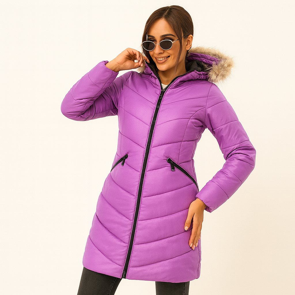 Norway fandt Dame Vinterjakke Lilla Xlarge til 289 DKK i kategorien hos topsko. Lang, lilla quiltet vinterjakke med hætte og aftagelig pelskant. Jakken har en figursyet pasform, praktiske lynlåslommer og sort lynlås midtfor, som giver et flot kontrastlook. Den lette polstring gør jakken varm uden at virke tung, og det glatte material